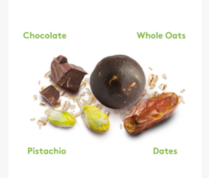 Ingredients: Dadel Pasta (55%), Pistache*, Pure chocolade, Havervlokken*