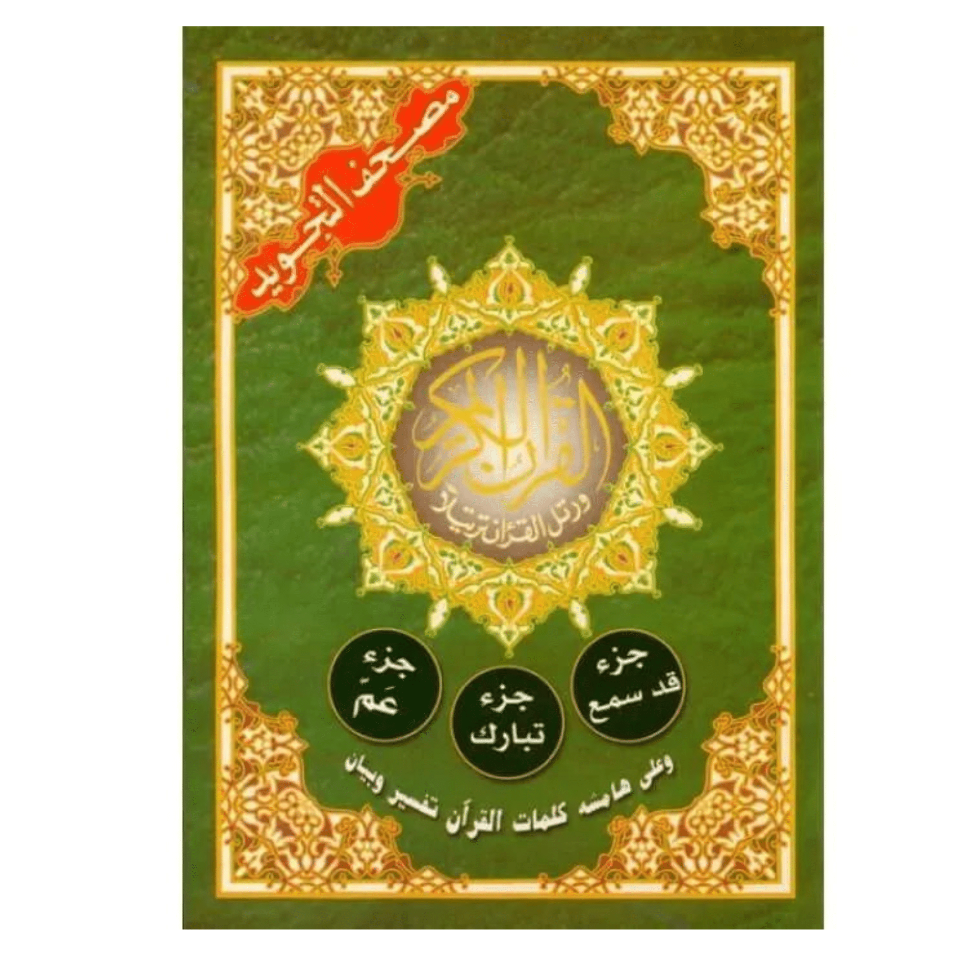 Djoez Amma, Djoez Tabaraak & Djoez Qas Sammi met Tajwid Schrift, duidelijk leesbaar. Achterin het boekje is er een afbeelding waaruit u kunt zien waar de klank vandaan moet komen.