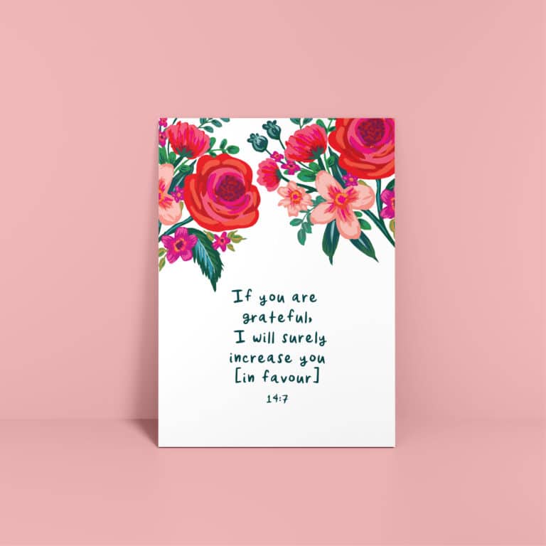 Kaart “If you are grateful, i will surely increase you in favour” 14:7