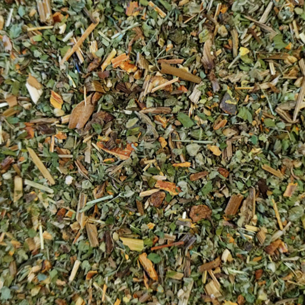 *Cichoreiwortel (Cichorium intybus), Leverkruid (Agrimonia eupatoria), *Stinkende gouwe (Chelidonium majus), Peterselieblad (Ptroselinum crispum), Tijm (Thymus vulgaris), Heemstblad (Althaea officinalis), Rhamnusbast (Rhamnus frangula).
